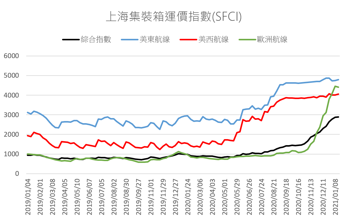 上市航運類股 上市類股 上市類股指數 2216 漲跌 104 提供最即時的指數走勢 上市航運成份股即時資訊 相關分類 近期表現 近二十日表現 歷史走勢 新聞. 由於明日起中國進入十一長假上海航交所今 30 日提前一日公布最新 SCFI 綜合指數較上周下跌 2969 點至 46141 點是一年來首見下跌其中美. 由於明日起中國進入十一長假上海航交所今 30 日提前一日公布最新 scfi 綜合指數較上周下跌 2969 點至 46141 點是一年來首見下跌其中美西線運價連 3 周持平歐洲線小跌整理美東線則意外看到每 feu標準 40 呎櫃 大跌 726 美元至 11250 美元跌幅達 606.